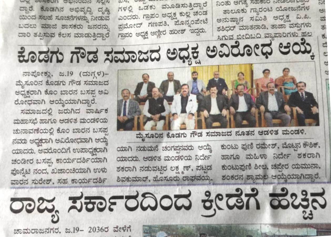 The Kodagu Gowda Samaja, Mysore, was originally named as Kodagu Gowda sangh and took its birth because of the broader forethought of our elderly founders having less than 50 members in the year 2000. The dedicated efforts of past Presidents, Board of Directors, and the generous support of our members have played a key role in making Gowda Samaja one of the most respected organizations in Mysore. Initially the activities of Samaja were held at Kodagu Gowda Vidhya Sangha Hostel Jayalakshmipuram, Mysore. Later on Samaja's activities shifted to a new building in the year 2011 to foster the culture, language, education and tradition of the Kodagu Arebhashe Gowdas. In December 2023, the building has been augmented with a new hall on the second floor with modern facilities to cater the need for conducting cutural events with a small gathering of 150 to 200.Kodagu Gowda Samaja is a centre for promoting art, culture, education and tradition of not only Arebhashe Gowdas but also of local diverse communities including spiritual organisations and provides space for events mentioned in the coming pages.